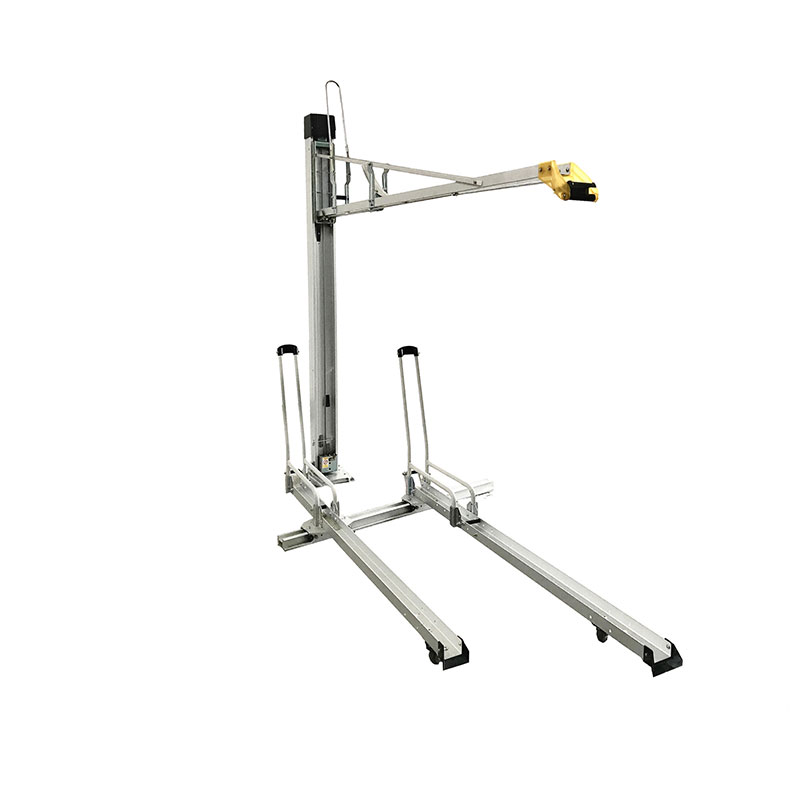 이 수직 리프트 자전거 주차장에는 내장 된 부스터가있어 사용자가 간단한 작업으로 자전거를 2 단계로 올릴 수 있습니다.